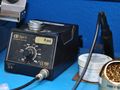 Powered hand tools are generally located on and around the tool wall, including the shelves under the tables.
